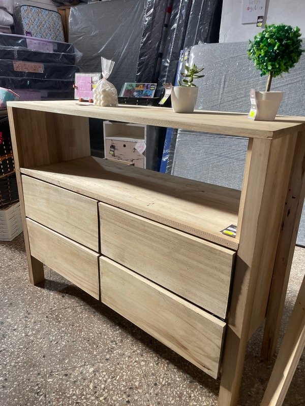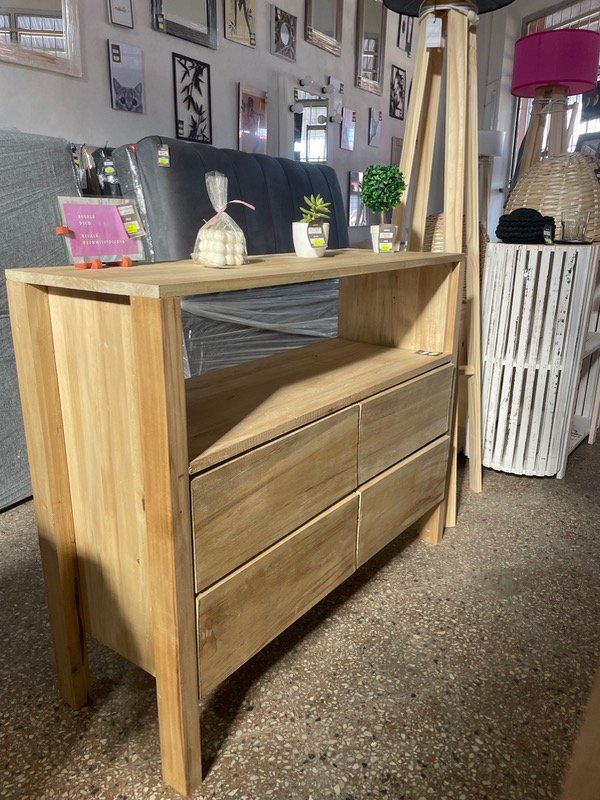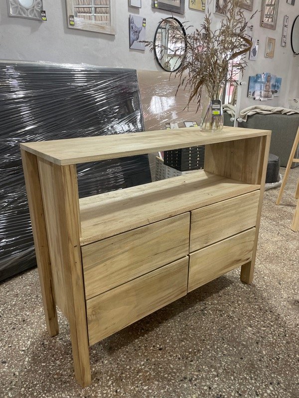 Cómoda/rack tv de alamo teñido, con 4 cajones con correderas telescópicas.